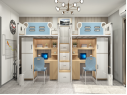 公寓書桌床: 1、公寓床架: (1)雙人位公寓床,尺寸長(zhǎng)4500mm,寬900mm,高2100mm。 (2)床立柱:采用正六邊形無縫鋼管,直徑65mm(±...點(diǎn)擊詳情